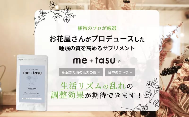 ※me+tasuは、栄養補助食品です。効果には個人差があります。